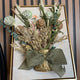Fresh Floral Arrangement: Delicate white carnations and deep burgundy roses are artfully arranged at the base, adding natural beauty and symbolic meaning—white for purity and red for divine love
